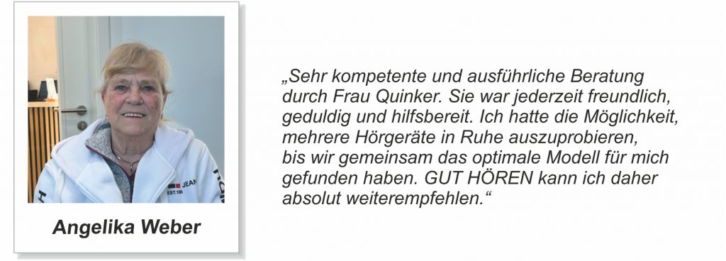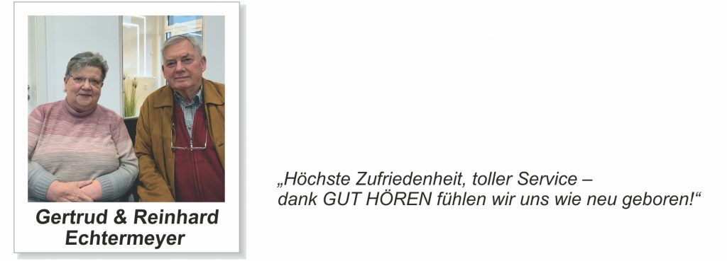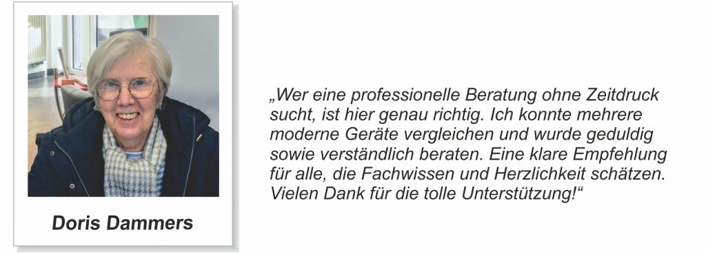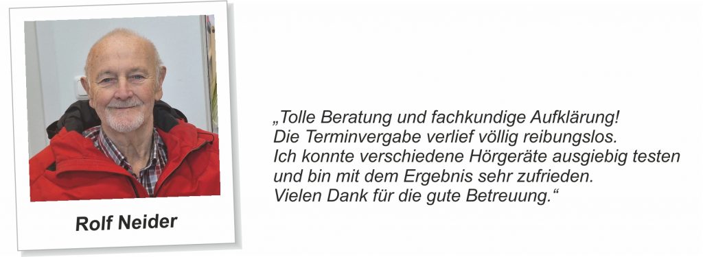 Erfahrungsberichte unserer Kunden …Unsere Kundinnen und Kunden aus Aachen-Eilendorf und Umgebung stellen uns netterweise Berichte ihrer Hörgeräte-Erfahrungen zur Verfügung. Hier finden Sie einen Auszug der Berichte: