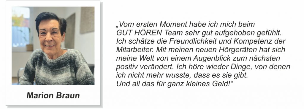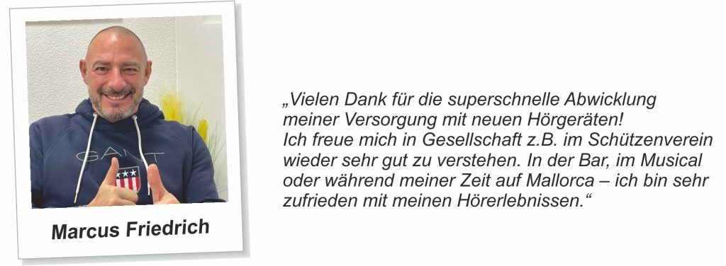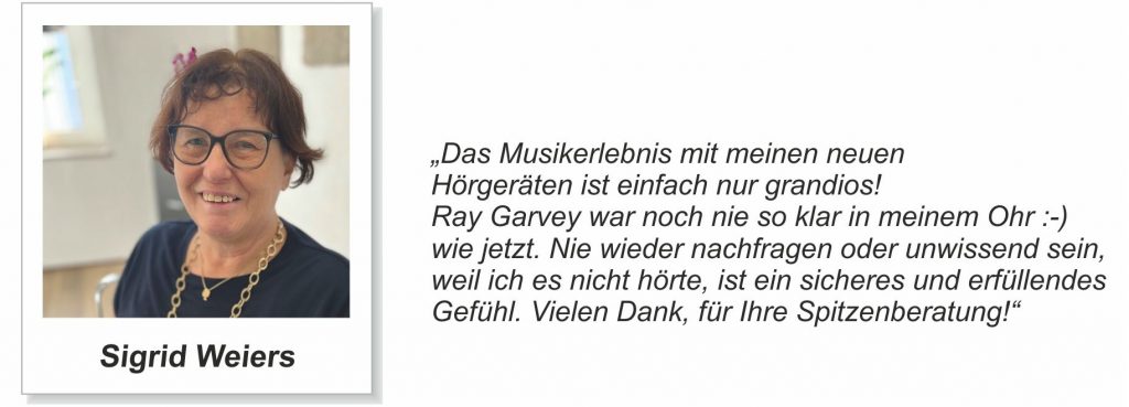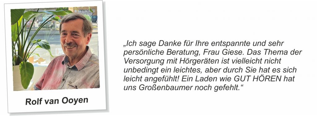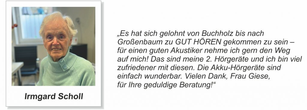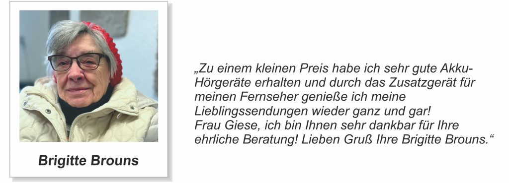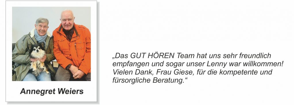 Erfahrungsberichte unserer Kunden …Unsere Kundinnen und Kunden aus Duisburg-Großenbaum und Umgebung stellen uns netterweise Berichte ihrer Hörgeräte-Erfahrungen zur Verfügung. Hier finden Sie einen Auszug der Berichte: